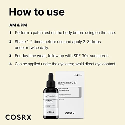 COSRX Pure Vitamin C 23% Serum with Vitamin E & Hyaluronic Acid, Brightening & Hydrating Facial Serum for Fine Lines, Uneven Skin Tone & Dull Skin, 0.7oz/20g, Korean Skincare