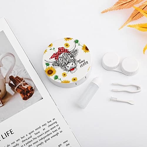 Cow Sunflower Heifer Contact Lens Case Colored Contact Lens Box Holder Container with Mirror Portable Eye Contact Holder Travel Kit with Lens Cleaner Solution Bottle Tweezers Outdoor And Office Daily
