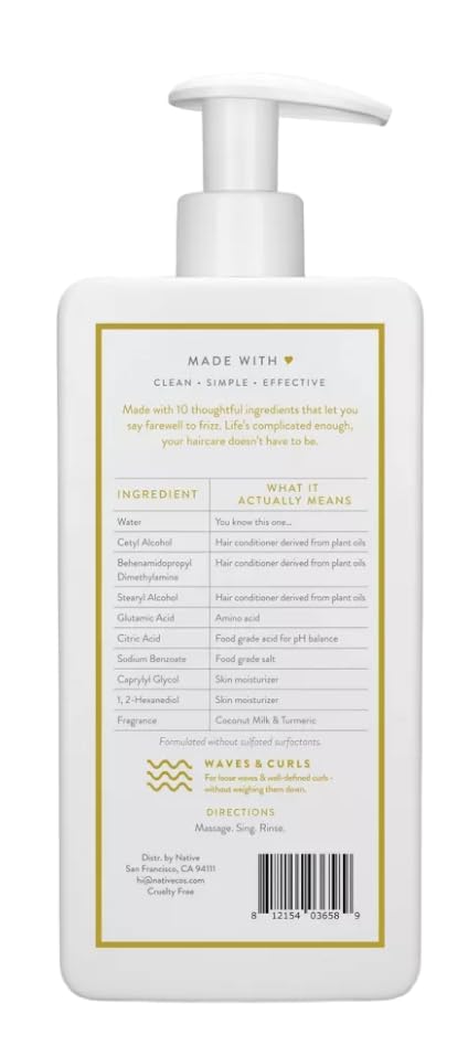 Curl Care Native Coconut Milk & Turmeric Shampoo and Conditioner (16.5 oz) (Coconut Milk & Tumeric)