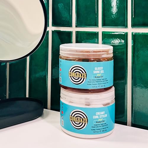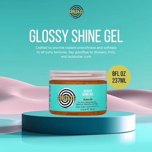 Curldaze Glossy Shine Gel with Kukui Oil, Vitamins A, C, & E, Defines Curls in Twist-Outs, Braid-Outs, Wash & Gos, Controls Frizz & Edges, Shines, Moisturizes, Protects & Renews Dry or Damaged Hair