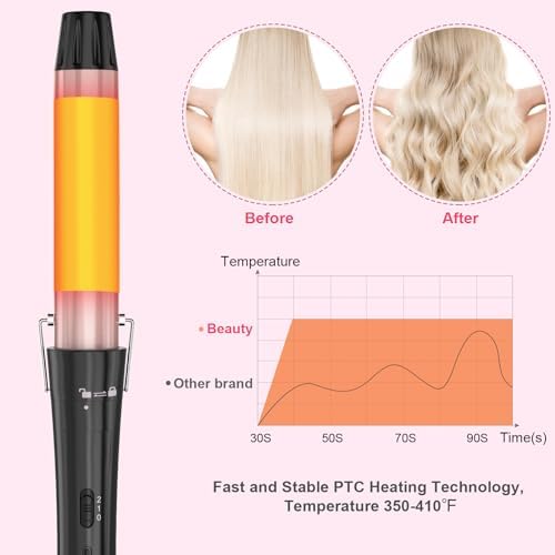 Wand curling iron realizes evenly heating with 30S, two-level temperature adjustment (350℉-410℉) the hair needs of delicate to hard type