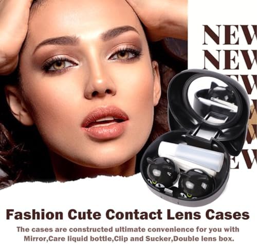 Black Contact Lens Case: 3D cartoon cat design,vivid and interesting expression. This kawaii contact lens case is equipped with a small mirror,so it is more convenient to look in the mirror at any time when wearing contact lenses.