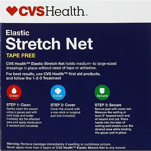 Ensure that the CVS Health Elastic Stretch Net 5 Yd is used to secure medical pads of medium to large size. This elastic netting is highly flexible and capable of securely holding dressings in place without the necessity of extra tape or adhesive. It is particularly convenient for areas that are challenging to tape or experience frequent movement, like the knees or elbows.