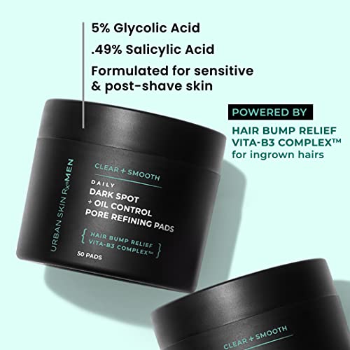 Daily Dark Spot + Pore Refining Pads, Urban Skin Rx® Men, Exfoliate, Remove Excess Oil & Clarify Pores with Daily Pads, Formulated with Glycolic + Salicylic Acid and Niacinamide, Fragrance-Free, 50 Ct