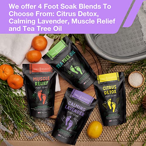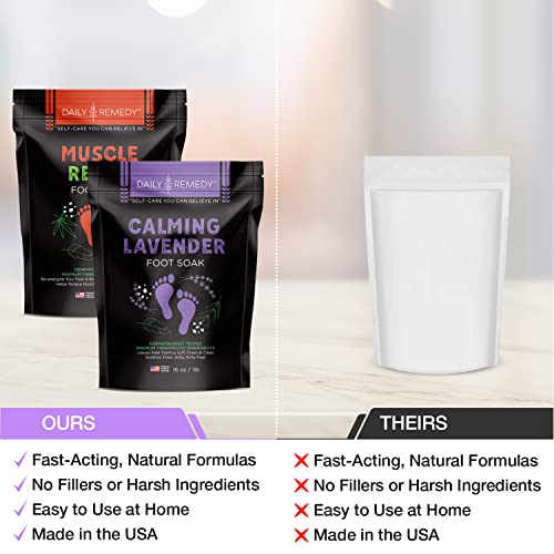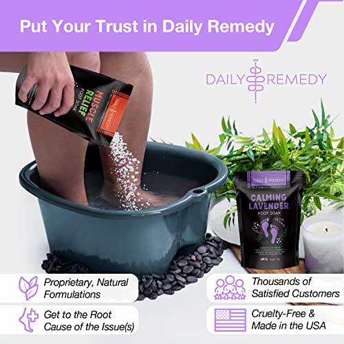 DAILY REMEDY Muscle Relief & Calming Lavender Foot Soak Set, Pack of 2, for Foot Pain, Odor, Sore Feet, Athlete’s Foot, Soften Calluses – Natural Blend & Salts, Made In USA