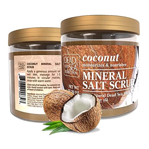 Dead Sea Collection Coconut Salt Body Scrub – Large 23.28 OZ – with Pure Oils and Dead Sea Minerals