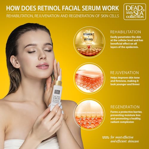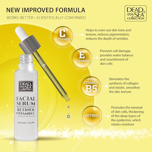 Dead Sea Collection Retinol & Vitamin C Serum for Face – Anti-Wrinkle Hydration Facial Serum – Smooth and Moisturized Skin – Enriched with Sea Minerals and Vitamins – 1.69fl.oz/50ml bottle+box