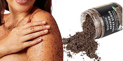 LOADED WITH ANTI-OXIDANTS: Our Coffee Body Scrub is loaded with antioxidants, which help to fight the appearance of premature skin aging like wrinkles, sun spots, and fine lines. When applied under and around the eyes, it can help in minimizing the appearance of puffy eyes as caffeine restricts blood vessels, which reduces swelling and inflammation. It may also help lightens the appearance of dark circles under the eyes.CELLULITE ENEMY: We combine best quality of organic coffee grounds with moisturizing, skin-soothing organic coconut oil and dead sea salt for an extra exfoliating kick. By massaging our organic anti cellulite coffee body scrub onto any problem area, it may help in reduction of the appearance of cellulite.It is a better experience than any cellulite cream.CACAO COCONUT SHEA BUTTER SUGAR FACIAL SCRUBS FORMULA: This high caffeine formula specializes in targeting stretch marks & Spider veins while boosting your skins anti-oxidants. The caffeine in a coffee scrub may also help in reducing the appearance of varicose veins. This dead sea salt body scrub also helps to lighten the scars and tighten the skin.100% NATURAL EXFOLIATING SCRUB & ACNE TREATMENT SKINCARE: Exfoliate your skin improves circulation & help remove residual dirt, giving you a fresher, younger, more moisturized appearance. Coffee grounds in this scrub acts as a mechanical exfoliate that helps to scrub away dead skin to reveal the new, healthy skin underneath and as a chemical exfoliater removing skin cells with enzymes or acidic properties.100% Natural Arabica Coffee Scrub 10 oz. with Organic Coffee, Coconut and Shea Butter : Get Professional Results and Full-On Pampering Without Straining Your Budget.SUITABLE FOR ALL SKIN TYPES – Our exfoliating body scrub is recommended for oily skin, dry skin, and everything in between. Get healthy, glowing skin with this spa quality gentle exfoliating and moisturizing body scrub and hand scrub! Apply it to moistened skin and massage gently with your fingertips in a circular motion for around 5 minutes. Rinse thoroughly and pat dry.COMBAT SIGNS OF AGING – An anti-aging moisturizer scrub that can help soften the skin and fight wrinkles, fine lines, and dark spots. It can help reduce signs of aging and tighten skin pores for a cleaner and smoother looking skin. The natural ingredients in this scrub help restore skin elasticity and suppleness. Feel younger, feel better.SPA QUALITY RESULTS: Detox and polish your skin through the removal of unwanted toxins from your pores while adding moisture and balancing systemic pH. The best coffee scrub and a top-quality pore minimizer that revitalizes healthy skin and works to maintain its silky-smooth results.