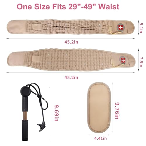 Adjustable & Inflatable Back Brace: The sticky velcro on the two ends of the decompression back belt, easy to ware and take off. The back brace belt comes with a air pump, just inflate it few seconds you can adjust it to make the belt more fit to your body, allowing you to enjoy the freedom of movement anytime, anywhere.