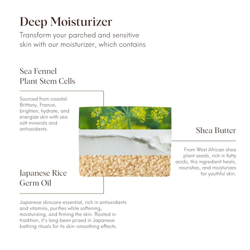 Enjoy mochi-plump skin with the help of our ultra-rich Deep Moisturizer. Repair and bring back your natural shine with our moisturizer, especially during winter months. Bathe skin in calming minerals and plump up the skin barrier for long-lasting hydration. Transform your parched and sensitive skin with our moisturizer, which contains Sea Fennel Plant Stem Cells, conditioning Shea Butter, and skin softening Japanese Rice German Oil. Deep Moisturizer’s rich blend of mild and effective botanical ingredients works wonders at providing your skin with the luscious hydration and nutrients that it needs to glow and shine.