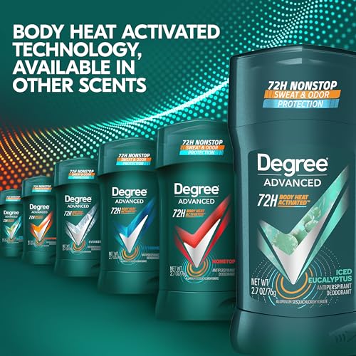 Degree Men Advanced Antiperspirant Deodorant Stick Ice Eucalyptus 4 Count 72-Hour Sweat and Odor Protection Deodorant for Men with Body Heat Activated Technology 2.7 oz