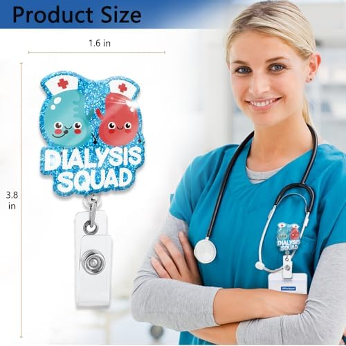 Dialysis Squad Fun Blue Glitter Badge Holder, Cute Kidney Nurse Office ID Tag Card Badge Holder, Birthday Gift for Nephrologist Nurse Kidney Transplant Team Dialysis Team Nurse MD PA RN