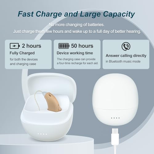 Digital Hearing Aids for Seniors RIC(Not Amplifiers) Over-The-Counter Rechargeable Tinnitus Masking Premium Hearing Solution for Adults,Nearly Invisible Bluetooth Call Enabled,Auto-On, 1pc Right Side