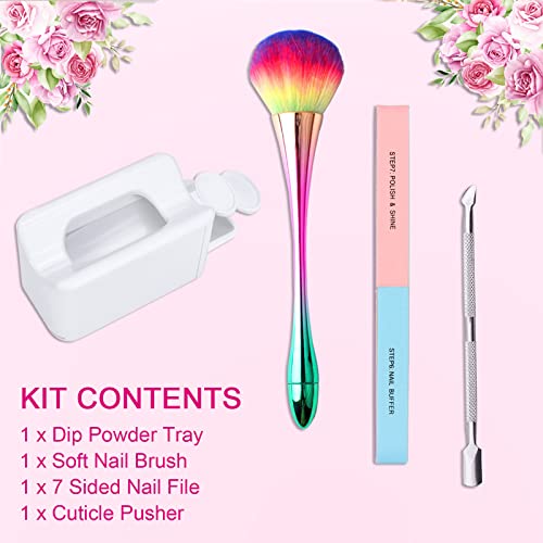 Dip Powder Recycling Tray Container with Scoop, Nail Dip Container Portable Dip Powder Storage Box, Soft Nail Dip Powder Brush, 7 Sided Nail File, Cuticle Pusher for Nail Art and Makeup Tool