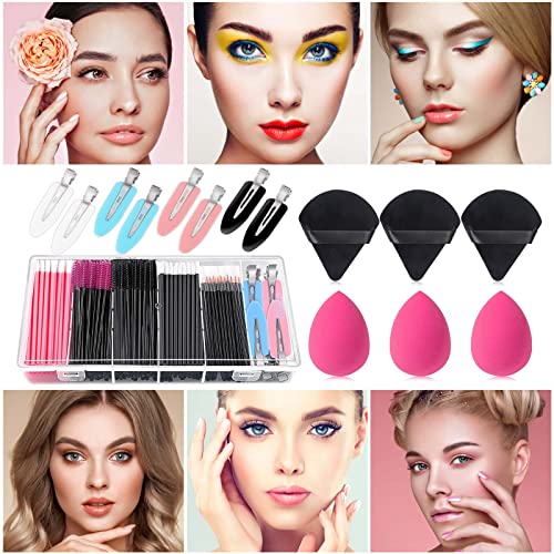 【Professional Makeup Artist Tools Kit】The disposable makeup applicators kit include 1pcs makeup mixing palette with spatula, 3pcs triangle makeup puffs, 3pcs beauty sponges, 100pcs mascara wands, 100pcs lips applicators, 40pcs eyeliner brushes, 8pcs hair clips for makeup, and 1pcs clear organizer box, a total of 256 pieces makeup accessories tools, ideal for professional makeup artist, makeup blogger to useenough makeup applicators to for professional makeup artist and beauty room to use