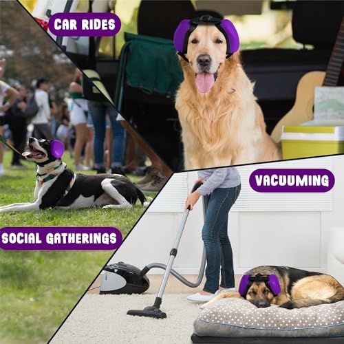 Dog Ear Muffs for Noise Protection and Fireworks, Noise Cancelling Headphones for Dogs, 29dB Dog Earmuffs, Dog Ear Plugs for Hearing Protection from Thunder. Reduce Anxiety (M, Purple)