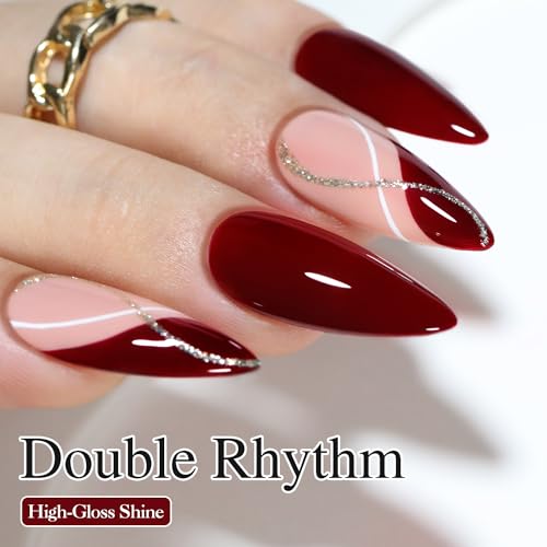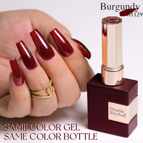 Double Rhythm 15ML Gel Nail Polish Dark Red Burgundy Maroon Same Color Same Bottle Soak Off Gel Polish Art Manicure Salon DIY at Home (A-A1129-Maroon)