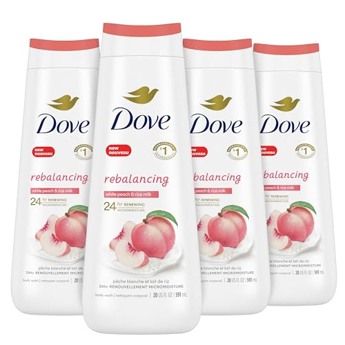 Refresh and rebalance your skin with this bundle of Dove body washes. It includes 4 bottles each of Dove’s Renewing Peony and Rose Oil Body Wash and Dove’s Rebalancing White Peach and Rice Milk Body Wash. Both 20 oz body washes feature Dove’s 24hr Renewing MicroMoisture technology with millions of MicroMoisture droplets to gently cleanse skin while providing 24 hours of hydration. The Renewing Peony and Rose Oil body wash nourishes skin with peony and rose oil extracts. Its luxurious lather will leave skin feeling renewed, healthy-looking, and soft as silk. The Rebalancing White Peach and Rice Milk body wash brings senses and skin into balance with its white peach and rice milk extracts. It moisturizes profoundly to leave skin peachy-soft and silky for 24 hours. These dermatologist-recommended, sulfate-free body washes are vegan and packaged in 100% recycled plastic bottles. Dove does not test on animals. Together these complementary body washes provide a complete experience that gently cleanses and conditions skin while aligning with ethical values.