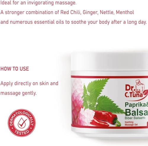 Dr. C. Tuna’s Massage Gel is a soothing blend of natural ingredients designed to relieve muscle tension and soreness after a long day. Infused with the warming properties of paprika, chili, ginger root, and nettle extracts, this gel helps increase blood flow and promote relaxation. The addition of mint, jojoba, and rosemary oils provides a refreshing and invigorating aroma while nourishing the skin. With a generous 16.9 fl. oz (500 ml) size, this massage gel is perfect for full-body massages or targeted relief on specific areas. Massage it into sore muscles and feel the therapeutic effects as it penetrates deep into the tissue. Indulge in a spa-like experience at home and soothe your body with this luxurious massage gel.