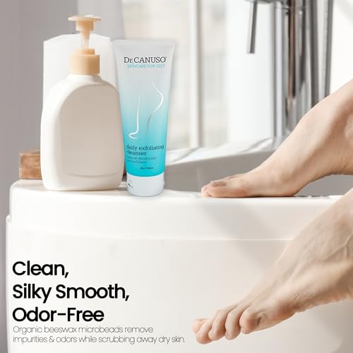 EXFOLIATING FOOT CLEANSER : Say hello to healthy feet with the Dr. Canuso exfoliating foot scrub. Our nourishing foot wash uses eco-friendly beeswax microbeads to slough away oil, dirt, and dead skin for ultra soft, hydrated feet that you can feel good about.