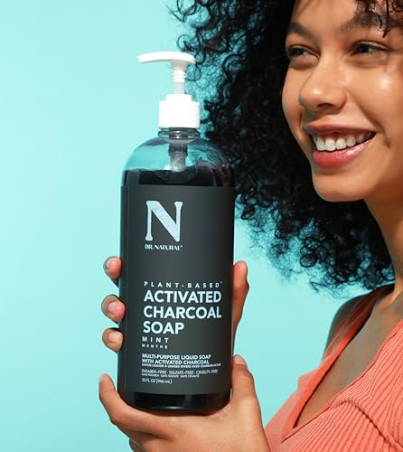 Dr. Natural Charcoal Liquid Soap, Mint, 32 oz – Plant-Based – Made with Shea Butter – Rich in Essential Oils – Paraben-Free, Sulfate-Free, Cruelty-Free – Multi-Use Liquid Soap