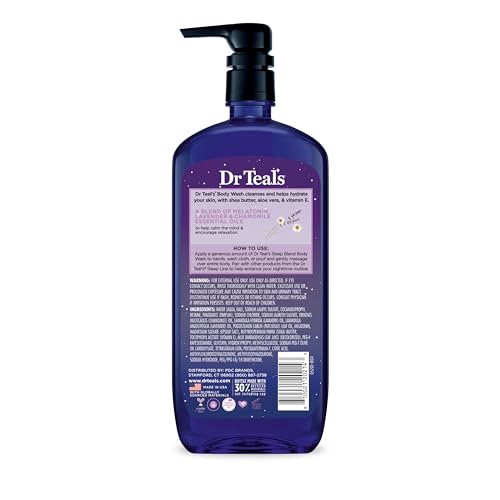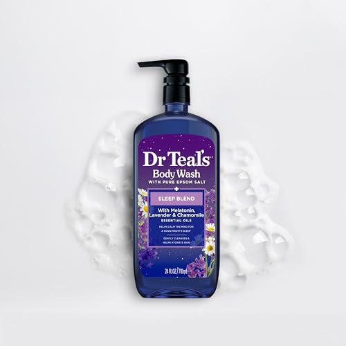Dr Teal’s Body Wash with Pure Epsom Salt, Sleep Blend with Melatonin, Lavender & Chamomile Essential Oils, 24 fl oz (Pack of 4) (Packaging May Vary)