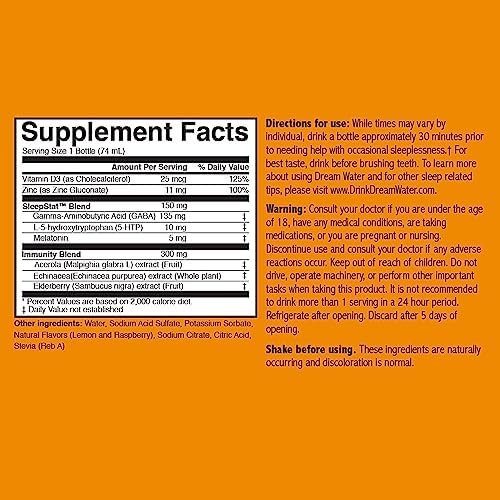 CONVENIENT AND EFFECTIVE. Dream Water Immunity Support Sleep aid drink supplement is a convenient, single-use 2.5 oz liquid sleep shot that helps you get a great, restful night’s sleep, stay asleep and wake refreshed.