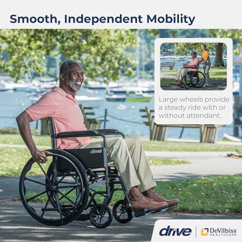 Drive Medical’s Silver Sport 1 Wheelchair marries a sleek design with essential safety features for a comfortable mobility solution that’s easy to operate independently or with assistance. Advanced urethane tires are long-lasting and require little maintenance, even with daily use. Push-to-lock wheels ensure safety while padded arms offer supportive cushioning, and the backrest is equipped with a carry pocket for conveniently stowing belongings. Transportation and storage is made easy with folding back canes and collapsible plastic footplates. Drive Medical’s Silver Sport 1 Wheelchair improves mobility with dynamic functionality and comprehensive safety capabilities. Do not operate this wheelchair on roadways, streets, or any surfaces with vehicular traffic. Backed by a limited three-year warranty and from Drive Medical, a leading brand of mobility aids, bath safety products, and other medical goods for more than 20 years, you can purchase with confidence.