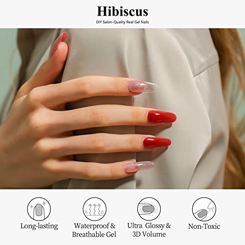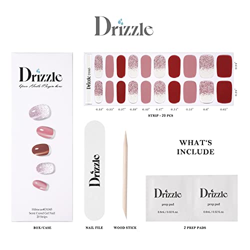 Drizzle Semi Cured Gel Nail Strips, Real Nail Polish Art Stickers (UV/LED Light Required),Glossy,Glitter, Solid Color,Full Nail Wraps Long Lasting,Nail Strips Decal for Women (Hibiscus-1)