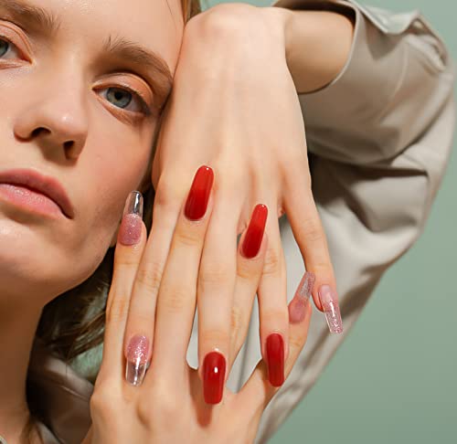 【SHINY GEL NAIL POLISH STRIPS】The nail wraps on the market are single in color and dull. This semi cured gel nail strips is our original work, they have a variety of patterns; some styles have shiny powder, they are glitter, luxurious and charming. This set of gel nail strips allows you to create professional salon-level nail art yourself.