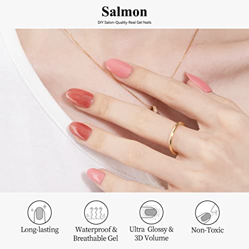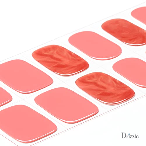 Drizzle Semi Cured Gel Nail Strips, Real Nail Polish Art Stickers (UV/LED Light Required),Glossy,Glitter, Solid Color,Full Nail Wraps Long Lasting,Nail Strips Decal for Women (Salmon-1)