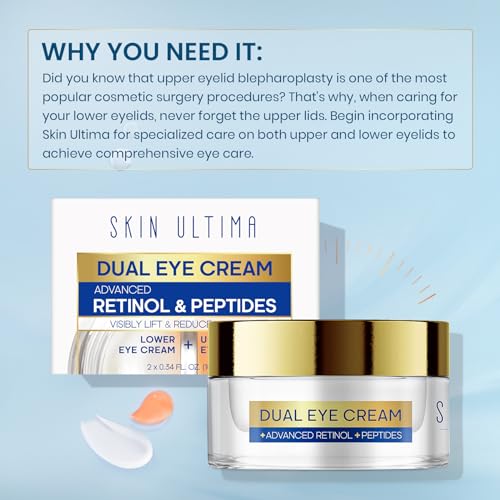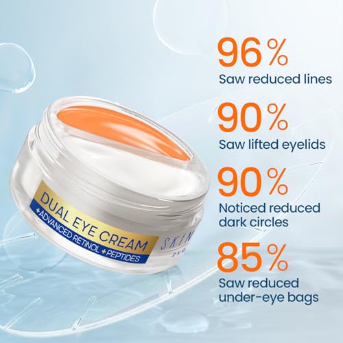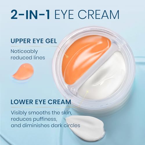Dual Eye Cream with Advanced Retinol + Peptides + Caffeine for Puffy Eyes and Dark Circles, Wrinkles, Anti Aging, Under Eye Bags Treatment, Instant Tightener, Fragrance Free, 0.68 OZ