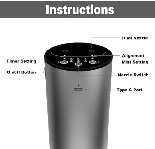Dual Nozzle Waterless Diffuser for Essential Oil Nebulizer, Air Fresheners, Rechargeable, Cordless Aromatherapy Diffuser for Home, Office, Car (Grey)