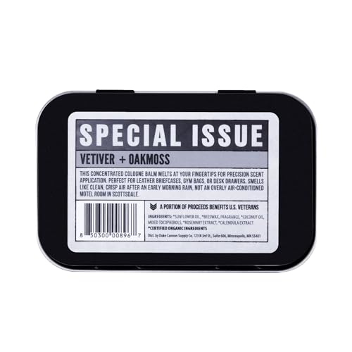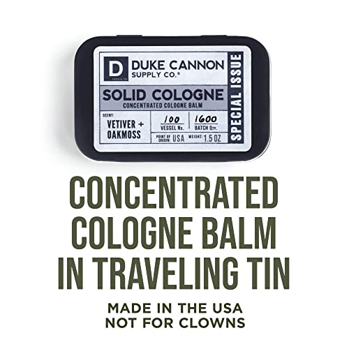 Duke Cannon Supply Co. Solid Cologne for Men Special Issue Vetiver + Oakmoss (Fresh Air, Sandalwood) – Concentrated Balm, Travel-Friendly Tin, Made with Natural & Organic Ingredients 1.5 oz (1 unit)