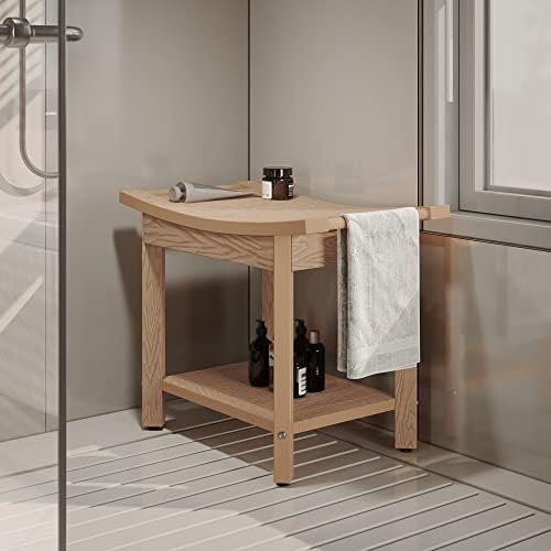 DWVO Poly Lumber Shower Bench, Shower Stool with Handles Storage Shelf, Water Resistant & Non-Slip Design Shower Seat, Large Shower Bath Chairs Spa Stool for Bathroom, 24′ x 13′ (Teak)