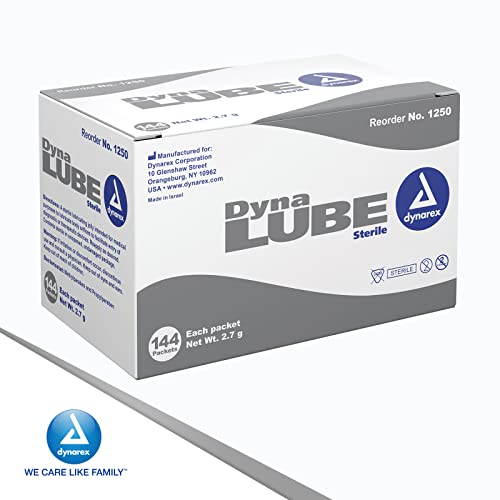 Dynarex DynaLube Lubricating Jelly, Water Soluble and Sterile Lubricant Jelly, Used for Body Orifices, Hinged Instruments and Medical Devices, 1 Box of 144 DynaLube Packets, 2.7g