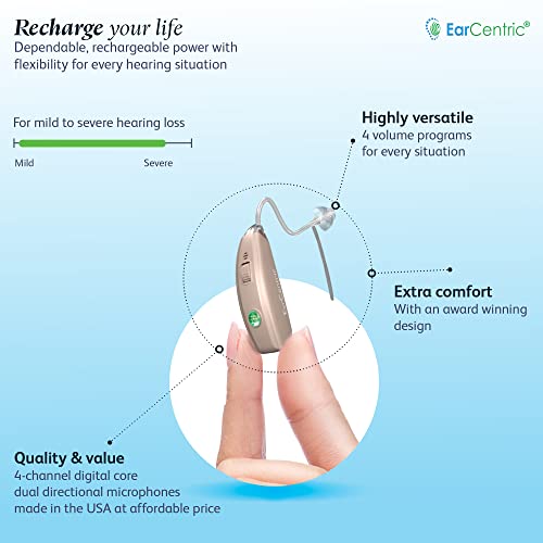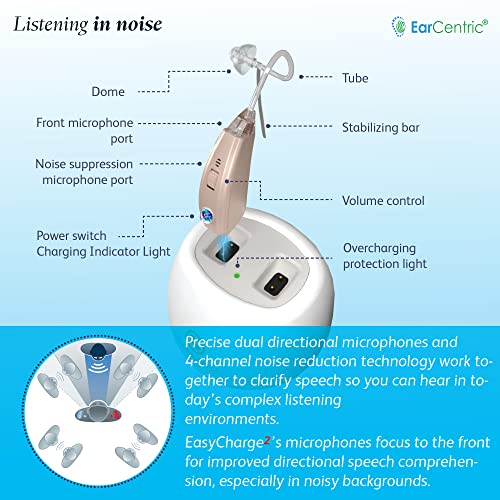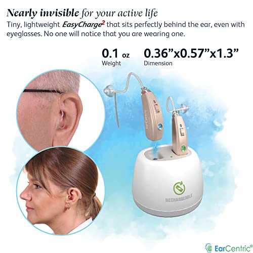 EarCentric EasyCharge2 Hearing Aid (Set of 2), Advanced Rechargeable Behind-The-Ear (BTE) Ear Aid for Seniors, Crystal Clear Sound with Noise Cancellation, 4 Adaptive Programs