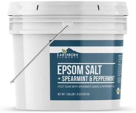 Earthborn Elements Spearmint & Peppermint Epsom Salt Foot Soak, 1 Gallon Bucket, Minty Aroma, Always Pure
