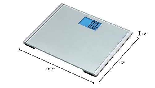 EXTRA WIDE SPACIOUS PLATFORM: The Eat Smart Precision Premium Digital Body Weight Bathroom Scale with a large, durable glass platform is 15.375″ x 11.75″ providing extra stability and foot space when weighing.
