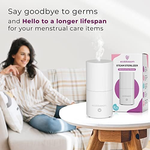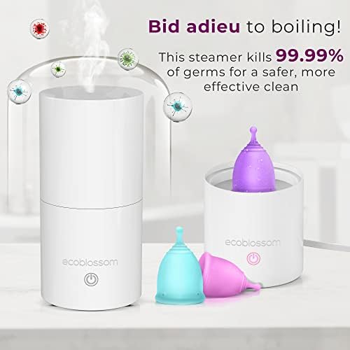 Ecoblossom Menstrual Cup Sterilizer – Modern Menstrual Cup Cleaner Unscented Sanitizer – 2-Minute Automatic Steam Wash – Holder Fits Small Soft & Large Period Disc (Steamer + Cups)