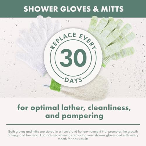 Includes (6) pairs of EcoTools Green Recycled Exfoliating Bath & Shower Gloves