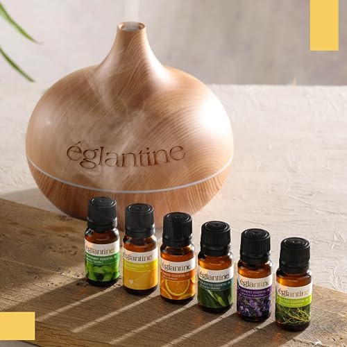 EGLANTINE Essential Oil Sets Top 6 Oils for Aromatherapy Oil Blends for Diffusers 100% Natural Massage, Candle Making, Home Care, Eucalyptus, Lemon, Lavender, Orange, Peppermint, Tea Tree