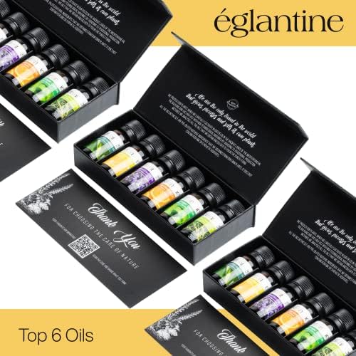 EGLANTINE Essential Oil Sets Top 6 Oils for Aromatherapy Oil Blends for Diffusers 100% Natural Massage, Candle Making, Home Care, Eucalyptus, Lemon, Lavender, Orange, Peppermint, Tea Tree