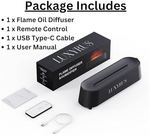 Introducing our innovative Luxyrus Flame Diffuser, a revolutionary amalgamation of elegance and functionality. This pioneering device seamlessly integrates the timeless charm of a fireplace with the contemporary utility of an **aromatherapy diffuser**, the inviting warmth of a **flame**, and the comforting mist of a **humidifier**. Craft an unparalleled ambiance in any setting as dancing flames intertwine with the delicate fragrance of your preferred **aromatic oils** and the refreshing mist of the **humidifier**. Elevate your surroundings with the harmonious convergence of warmth, aroma, and moisture, meticulously calibrated to evoke a profound sense of tranquility and serenity. Ideal for enriching the ambiance of your living space or infusing sophistication into your office decor, the Luxyrus Flame Diffuser stands as the quintessential embodiment of style and substance. Experience the pinnacle of luxury and relaxation with this versatile room enhancement device that transcends conventional boundaries. Whether unwinding after a taxing day, seeking inspiration in your workspace, or indulging in a cozy evening at home, let the Luxyrus Flame Diffuser redefine your environment into a sanctuary of opulence and refinement. Immerse yourself in the opulent atmosphere created by this sophisticated device, whether you’re hosting a dinner party, enjoying a quiet evening with loved ones, or simply seeking solace in your personal sanctuary. Let the Luxyrus Flame Diffuser elevate every moment with its seamless blend of beauty and functionality, enriching your life with unparalleled comfort and luxury.
