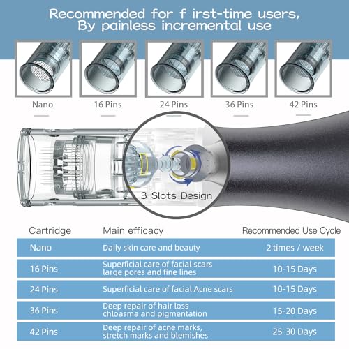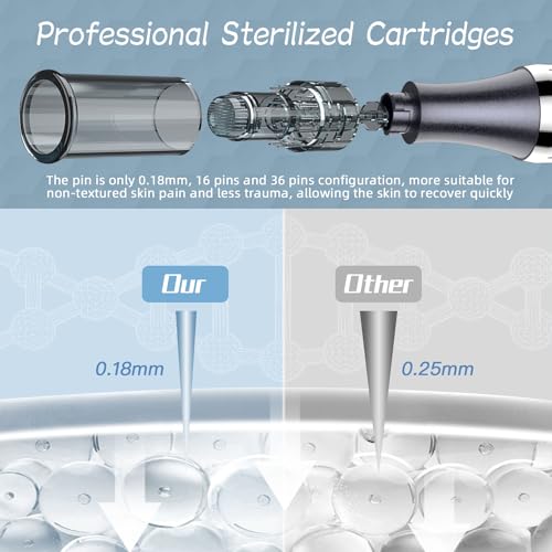 DESIRABLE SPECS – packaging for disposable use, with no need for extra sterilization. After massive research, the most practical 16 pins, 24pins,36 pins, 42pin,and painless nano needling are included for you.(4pcs 16pin+4pcs 24pin+6pcs 32pin+6pcs 42pin+2pcs Nano)