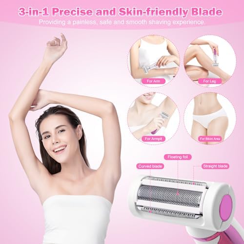 【Wet and Dry Use】The electric shaver for women blades are super waterproof, the cutting head is completely waterproof and easy to clean, rinse with water or immerse in the sink. Keep the blade dry after use. Note: The main unit is not waterproof, please do not immerse the shaver body in water.