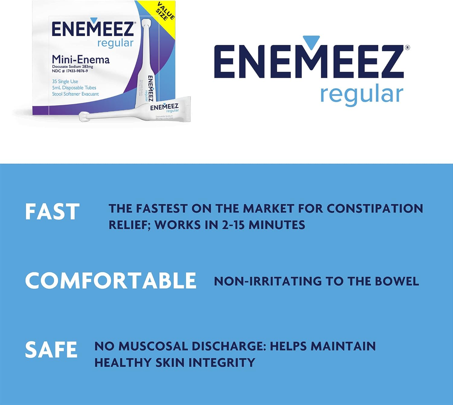 Enemeez Regular 283mg Docusate Sodium Mini Enema, Constipation Relief, 35 Count, (ENE00040)