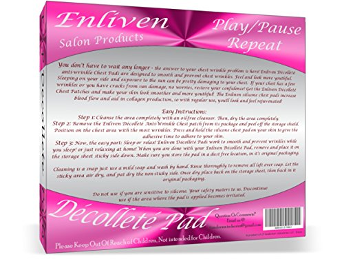 Enliven Salon Products Anti Wrinkle Chest Pads, Cream Less Skin Care At Its Finest, 2 Hypoallergenic Silicone Chest Wrinkle Pads That Rejuvenate The Decollete, and Repair Fine and Deep Chest Wrinkles
