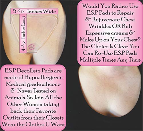 Join All the Other Women wearing their favorite outfits wrinkle free. E.S.P Decollete pads are made of Hypoallergenic Medical grade silicone, & Never Tested on Animals. Take Comfort in knowing they are made for you, & can be used anytime, while sleeping or getting ready for your day. They also help with Stretch Marks, Scars, Red marks & Blotches. Use them Where you need them.