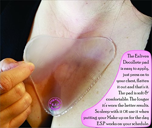 Put your Creams and Fillers away. E.S.P Anti Aging Silicon Decolette Pads are being used as a daily Decolletage Wrinkle Treatment & Repair Regimen, & valued over creams and serums as a more Natural way to Prevent aging & sleep lines. Leaving you a more Natural, Youthful, Softer skin, using your bodies collagen.